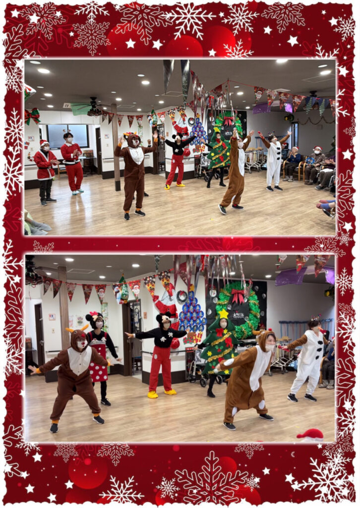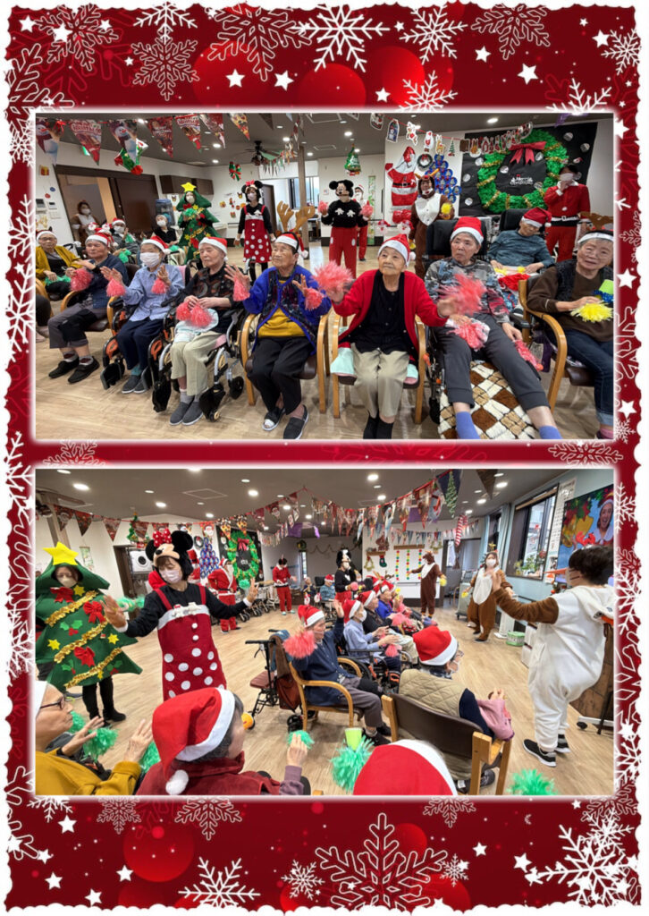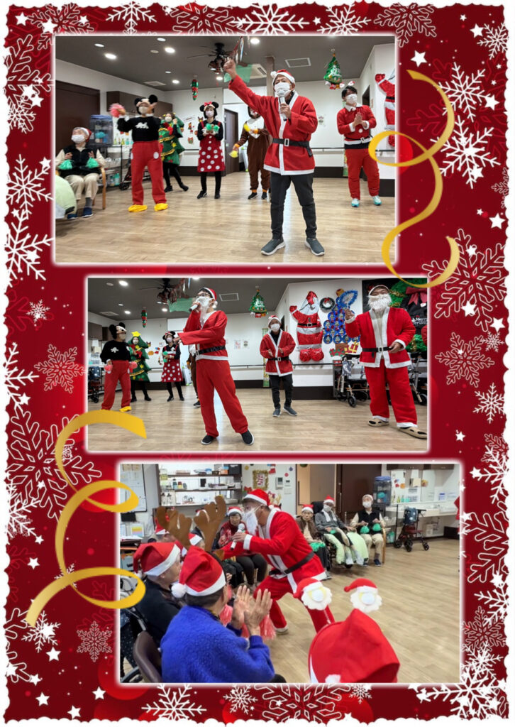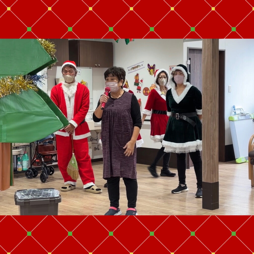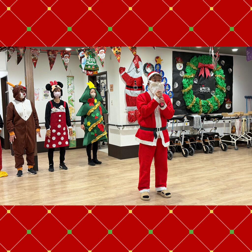 「今日は12月25日クリスマスです、今年最後のイベントになります。今年もあと1週間ほどで終わりますが、今年1年を振り返ってみて、怪我やご病気もなく健康に過ごせたのではないかと思います。今日はめいっぱいクリスマス会を楽しんでいただけたらと思います。」